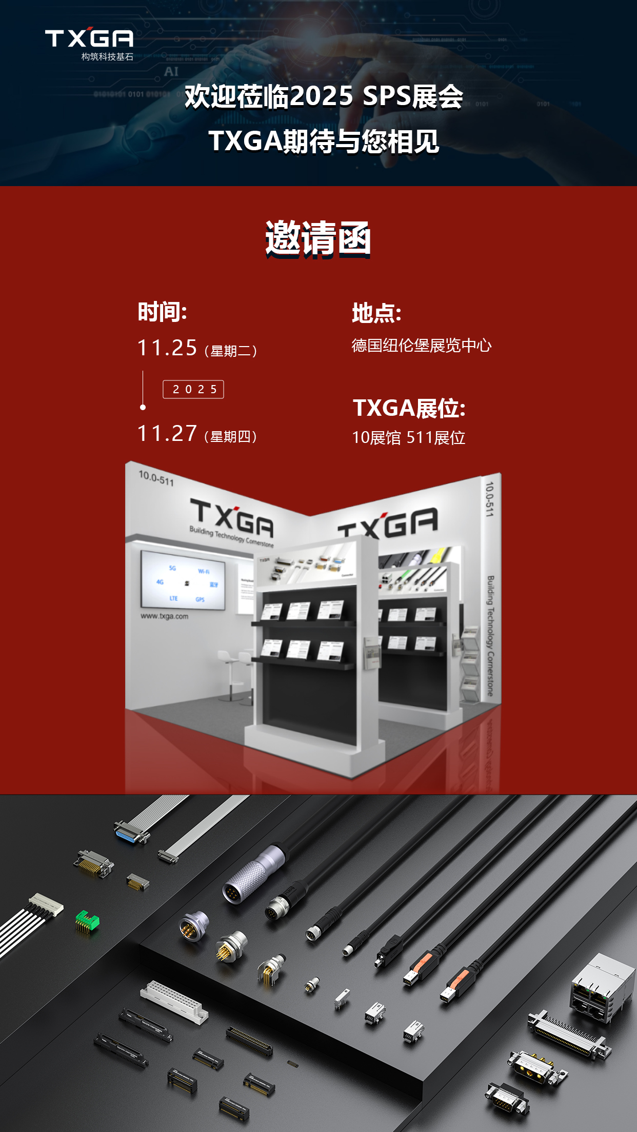 TXGA一直以來都致力于在連接器領域深耕細作,憑借專業的研發團隊和創新環境,不斷推出高品質、高性能的產品與互連解決方案。2025德國紐倫堡國際工業自動化展覽會,是行業交流的盛會,是科技碰撞的舞臺,更是TXGA與您攜手共進、共創未來的良好契機!